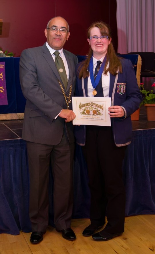 The Guildry of Stirling Dux Medal was first introduced at Bannockburn High School in 2007 and has been sponsored every year since. The Medal and presentation box were designed as a joint project by the school and the Guildry. The Medal was struck by the Tower Mint in London. The face of the medal shows the School crest and engraved above the words The Guildry of Stirling. The reverse of the medal has a Laurel leaf with the space for the recipients name and date. The silk screen on the presentation box has the Guildry symbol the reversed four and the words Presented by the Guildry of Stirling and instituted by Alexander 1st in 1119.