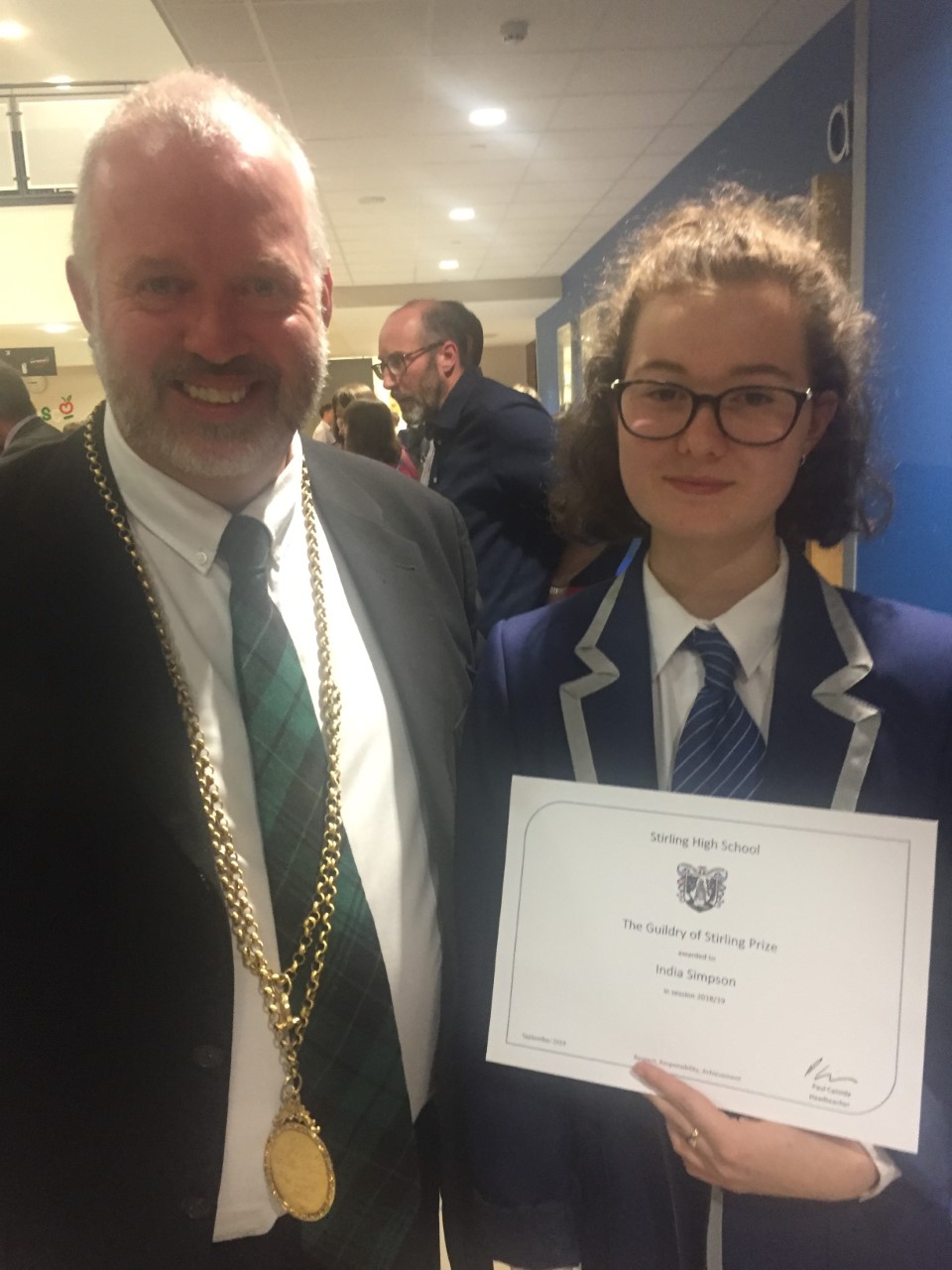 Since 2006 and every year to date, 125 Guildry of Stirling History Prize Certificates have been awarded to the participating High Schools within the Stirling Council area as well as the Queen Victoria School in Dunblane and the University of Stirling History Department. Each school or History faculty are awarded the sum of £100 in the form of vouchers and are divided equally between their number of History Prize Winners.